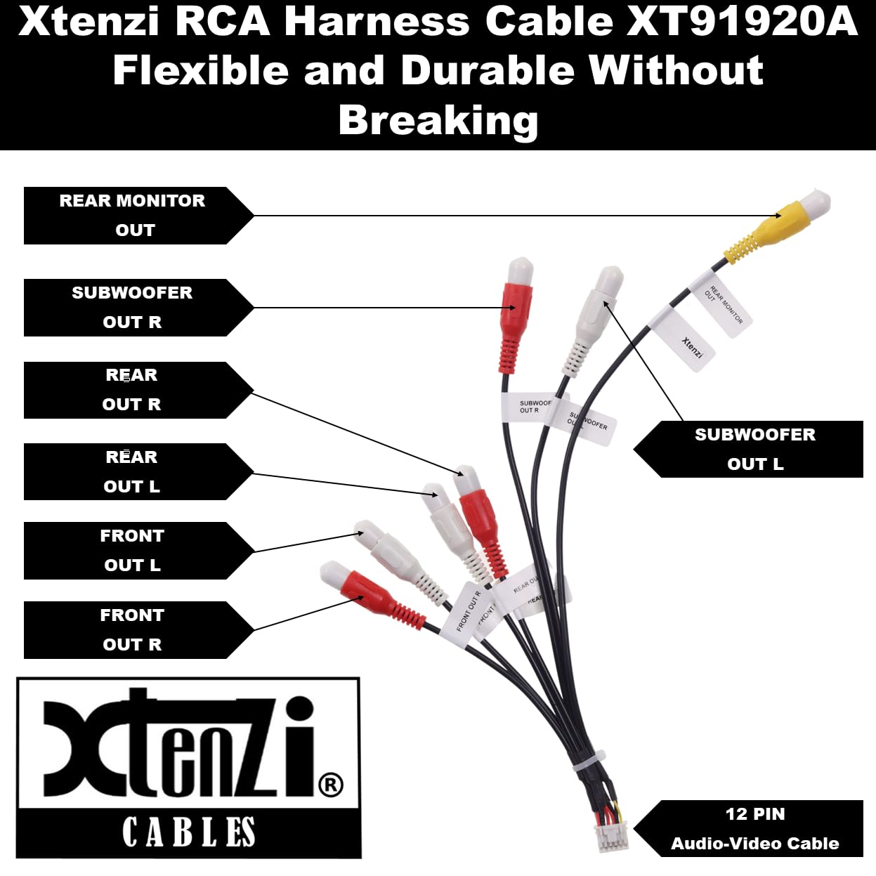 Xtenzi XT91920A RCA Cord Assembly Harness Car Audio Video Compatible with Pioneer DMH160BT, DMH1700NEX, DMH1770NEX, DMHW2700NEX, DMHW2770NEX