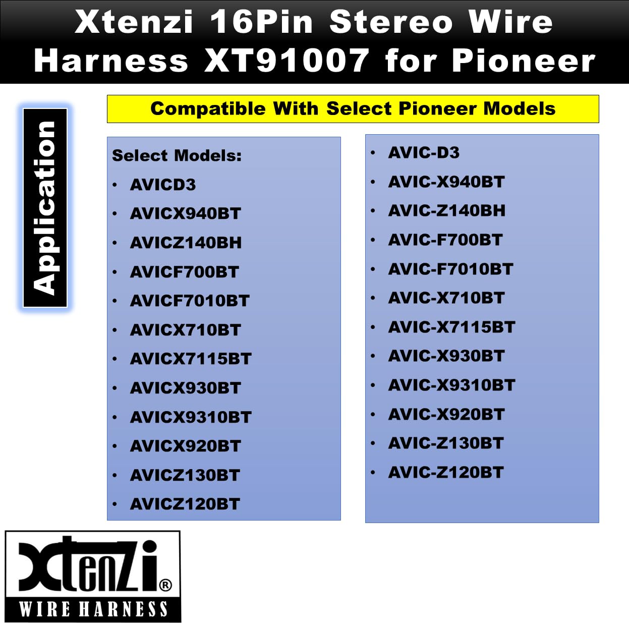 Xtenzi 16 Pin Car Radio Wire Harness Compatible with Pioneer CD DVD Navigation In-Dash - XT91007