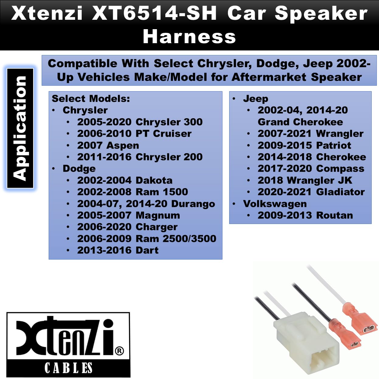 Xtenzi 2 Pair Car Speaker Harness Set Compatible with Chrysler, Dodge Vehicles