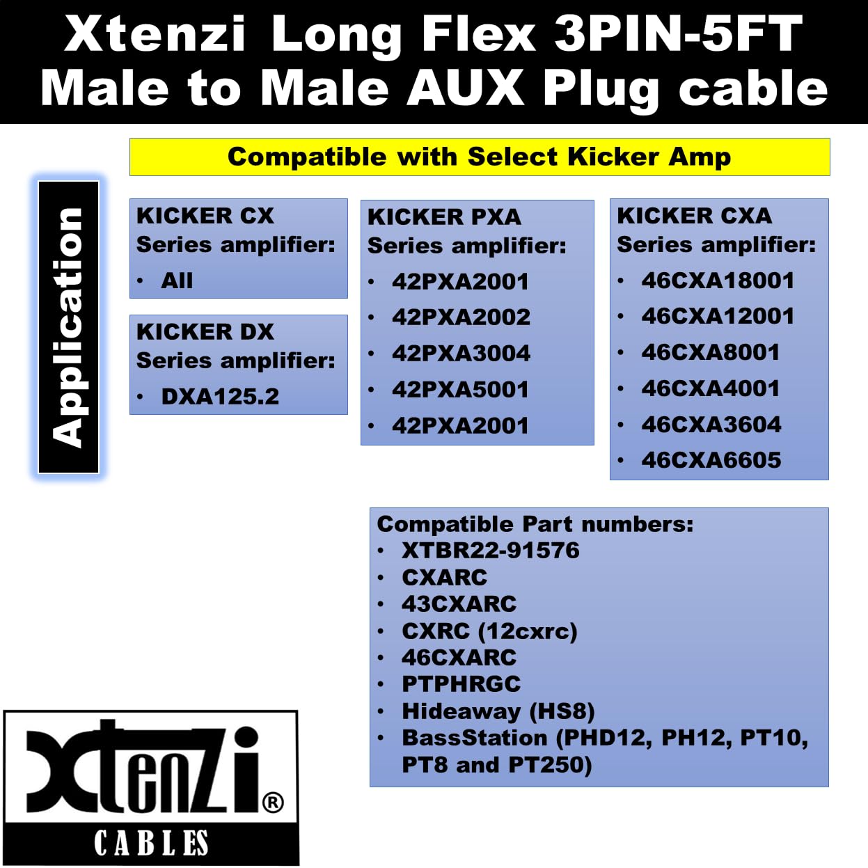 Xtenzi 3Pin Jack Flex Cable Wire Accessory for Bass Remote Knob Compatible with Kicker CX DX PX KEY500.1 Hideaway Amplifiers (5 Feet)