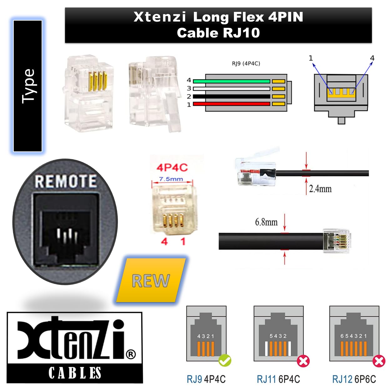 Xtenzi 4Pin Flex Cable XTFC Wire Accessory XT91656 for Amp Bass Remote Knob Compatible with Pioneer GM-D8704 GM-D9701 GM-D9705