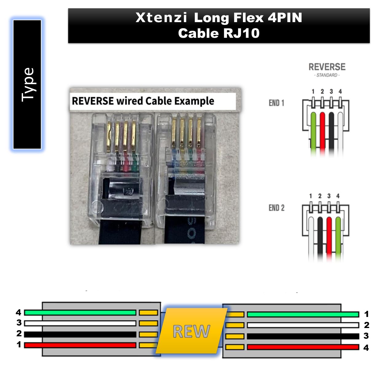 • RJ10 REW-4P4C Cable, 4-Wire, Reverse-Pinning, 15-Feet Long, 4position 4contact (4p4c) Male-plug to Male-plug.