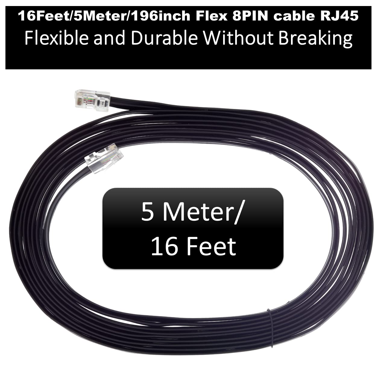 • Cable length: 5-Meter / 15-Feet / 196-inch long Cable.