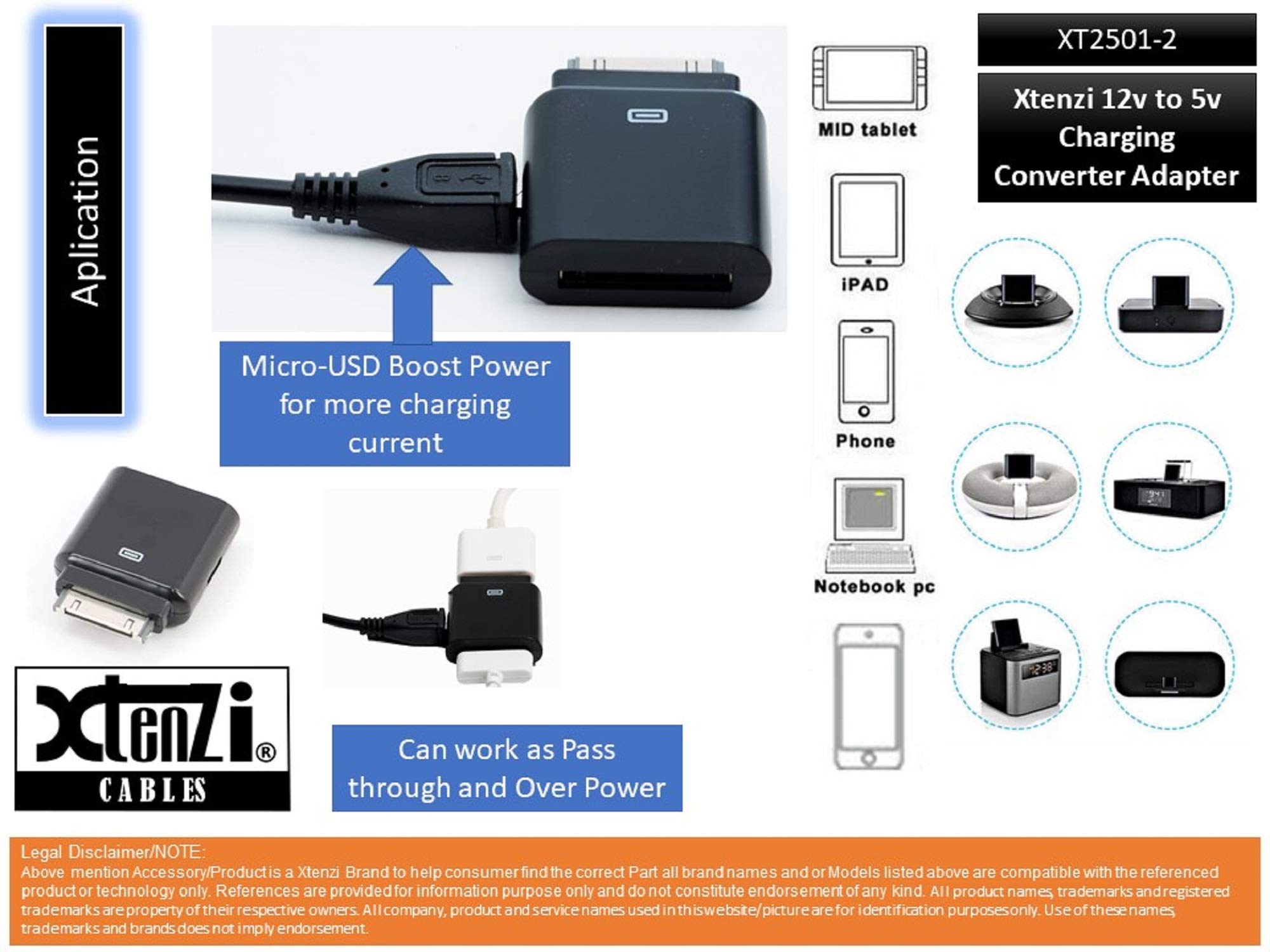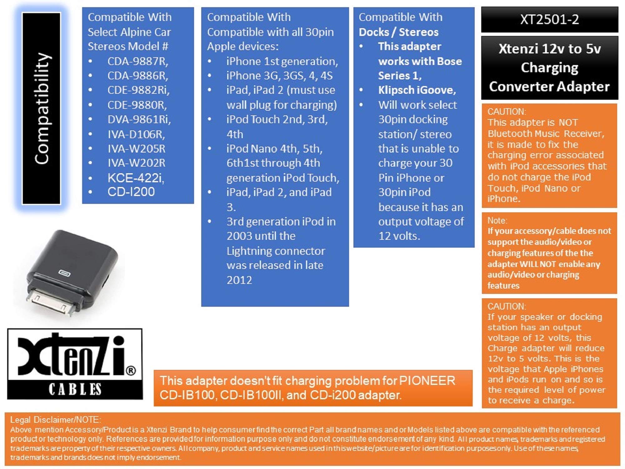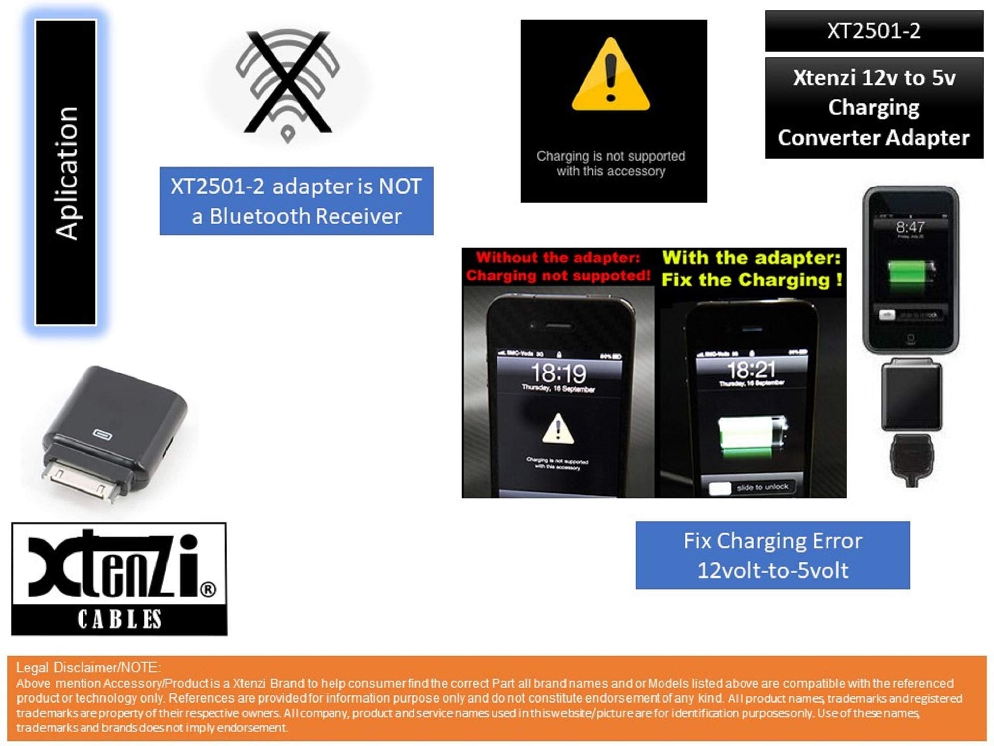 Xtenzi Aftermarket Replacement 12V to 5V Charging Converter Adapter Compatible with Select iPod's