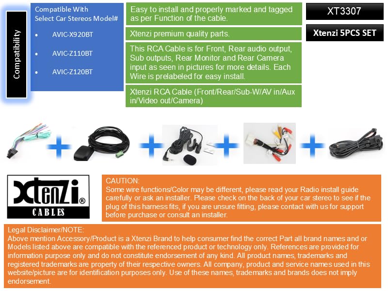 Xtenzi Brand 5PCS Replacement Set XT3307 Compatible with Pioneer In-Dash Radio DVD NAV System. Hard To find complete set to install your IN-Dash if missing important parts. This Set include Five (5) Main Cables for the Pioneer NAV System. If you do not need the whole complete set, you can purchase them separately